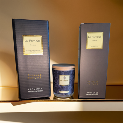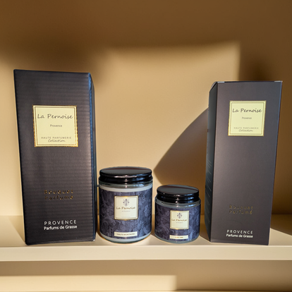 Bougie 100 ml, bougie 230 ml, diffuseur 100 ml et diffuseur 200 ml.